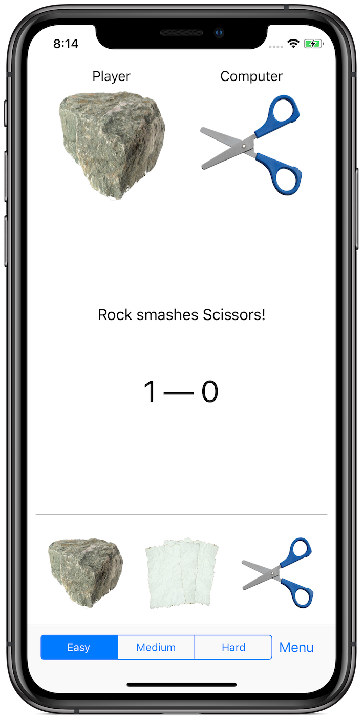 Clean and simple Rock, Paper, Scissors! action for iPhone. Just pick the right weapon,